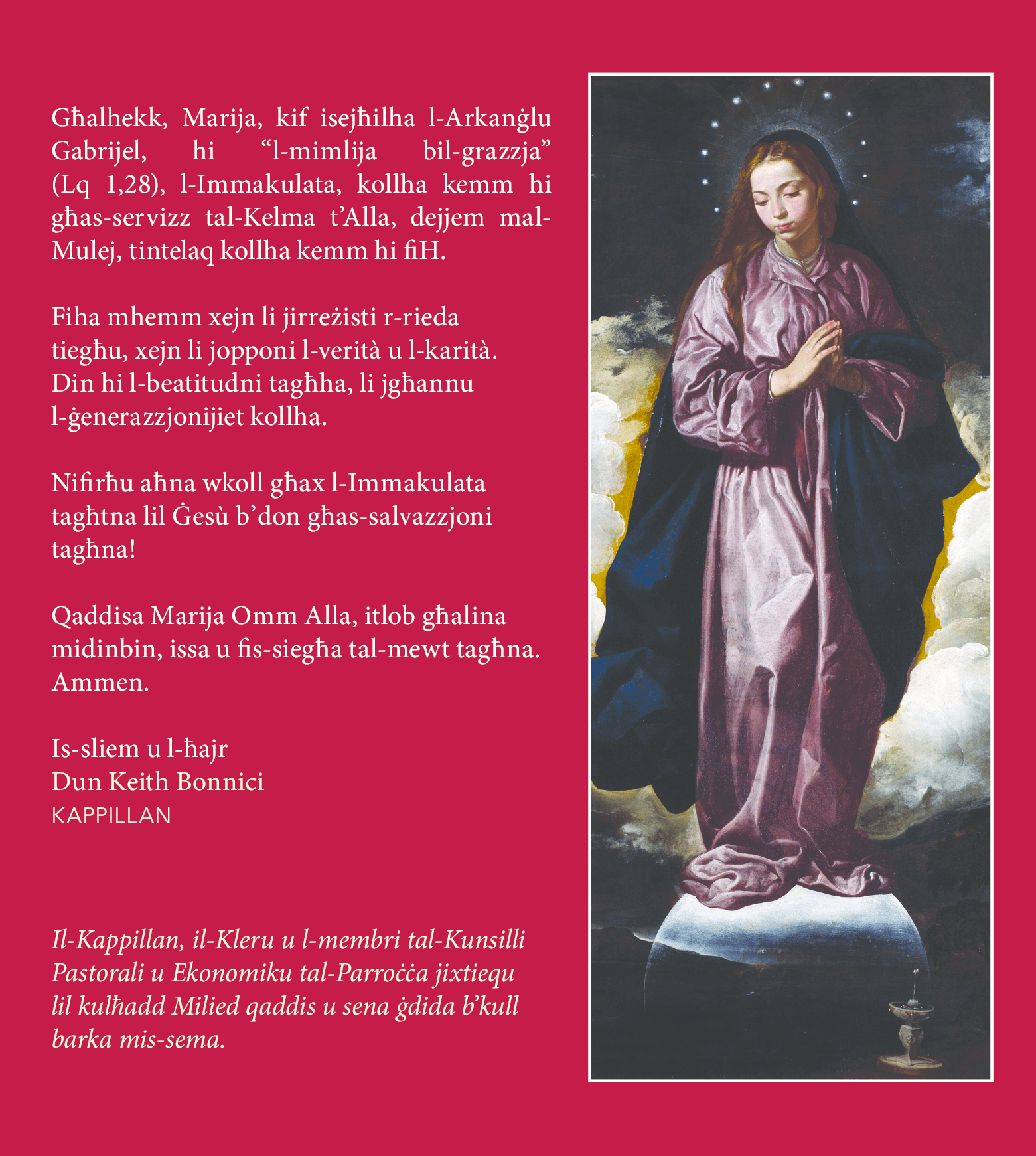 Fil-bidu tal-Avvent Imqaddes, niċċelebraw is-solennità tal-Kunċizzjoni Immakulata.