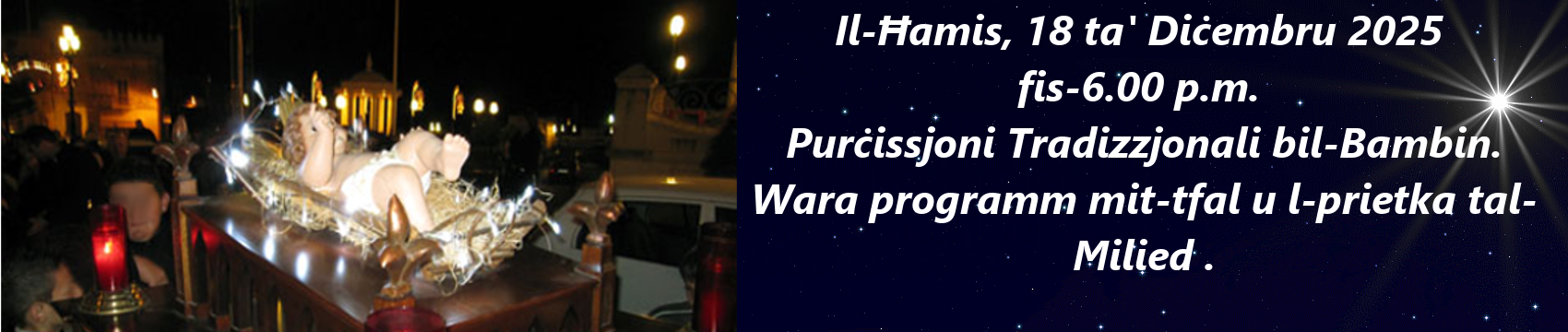 TQARBIN TAL-MORDA: Kuljum tal-ġimgħa filgħodu b’appuntament wara li ssir talba lill-Kappillan.